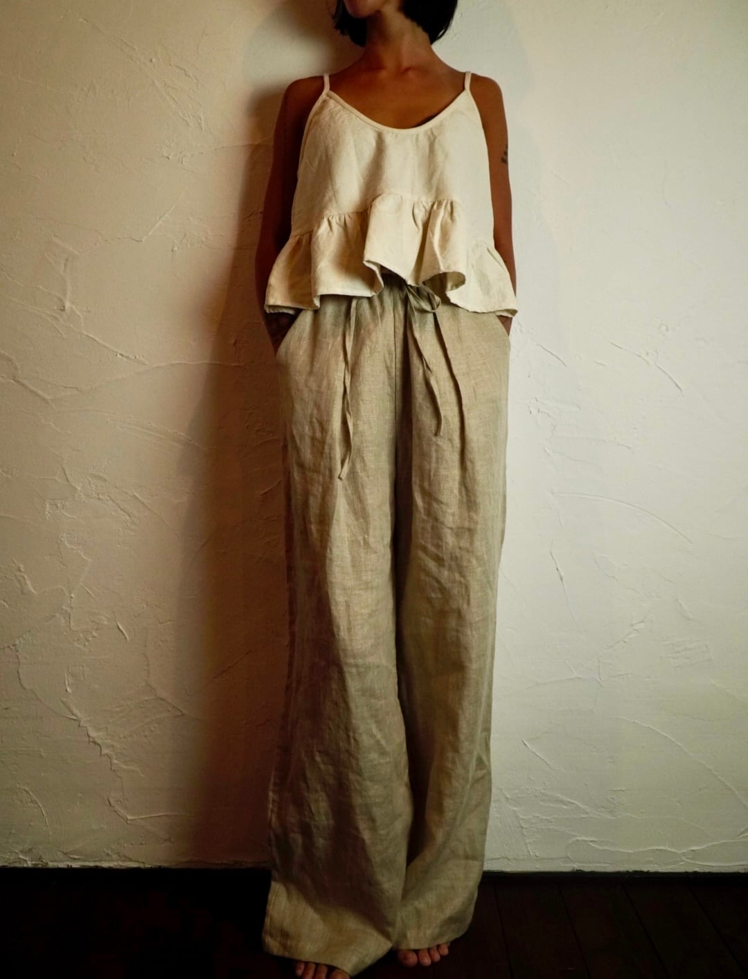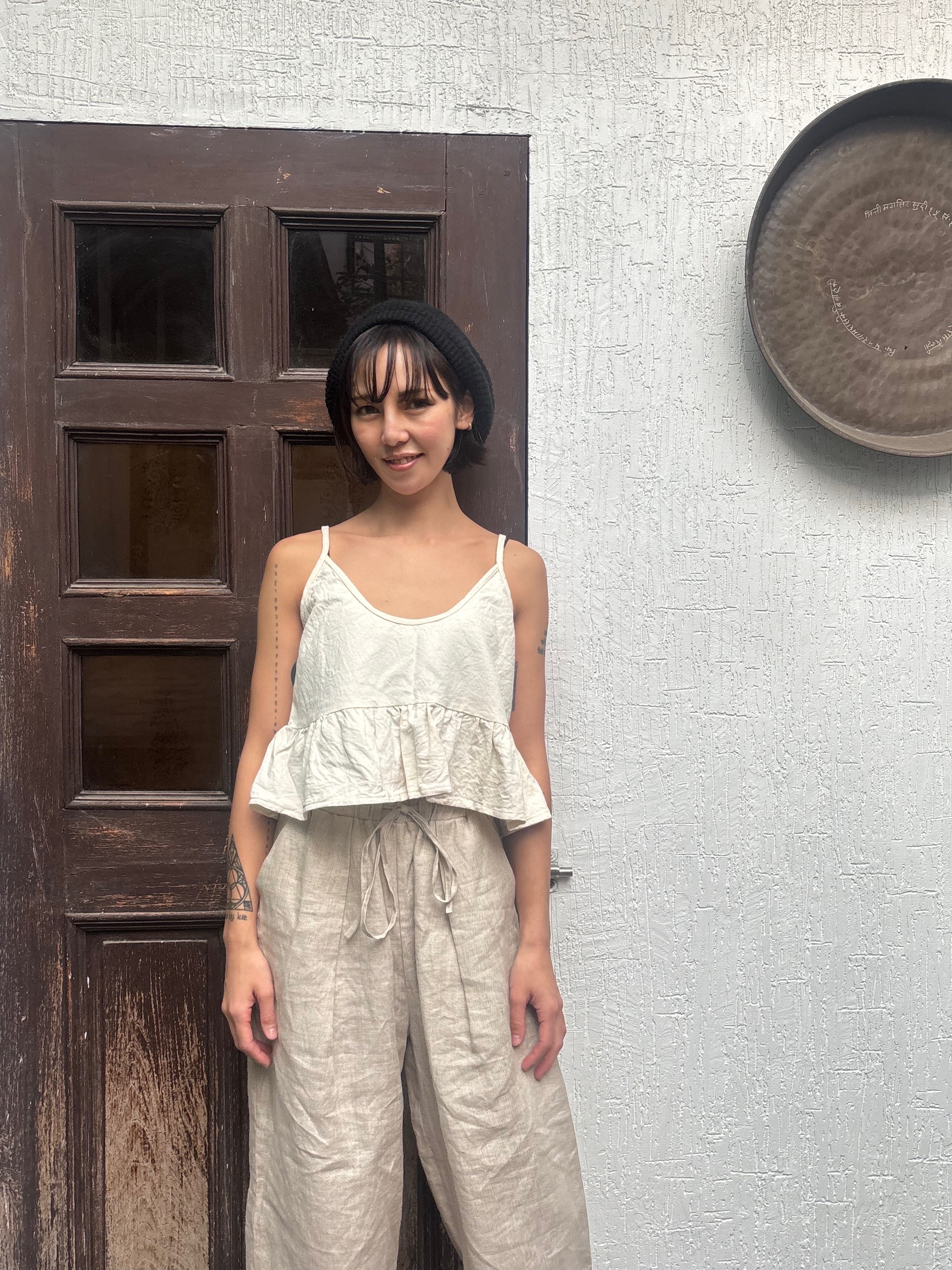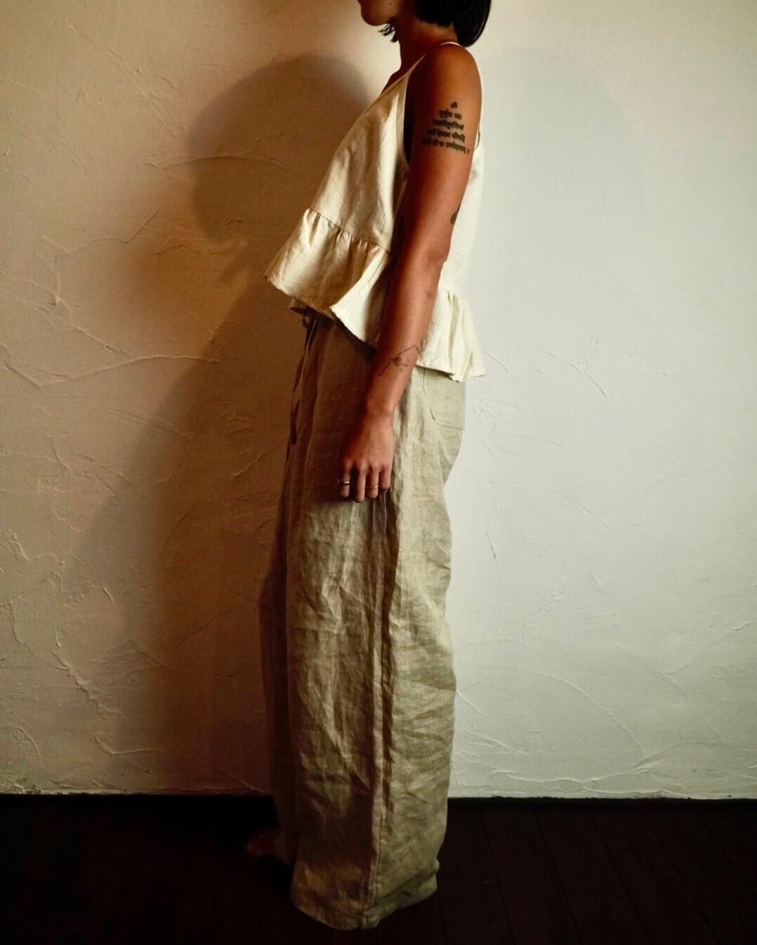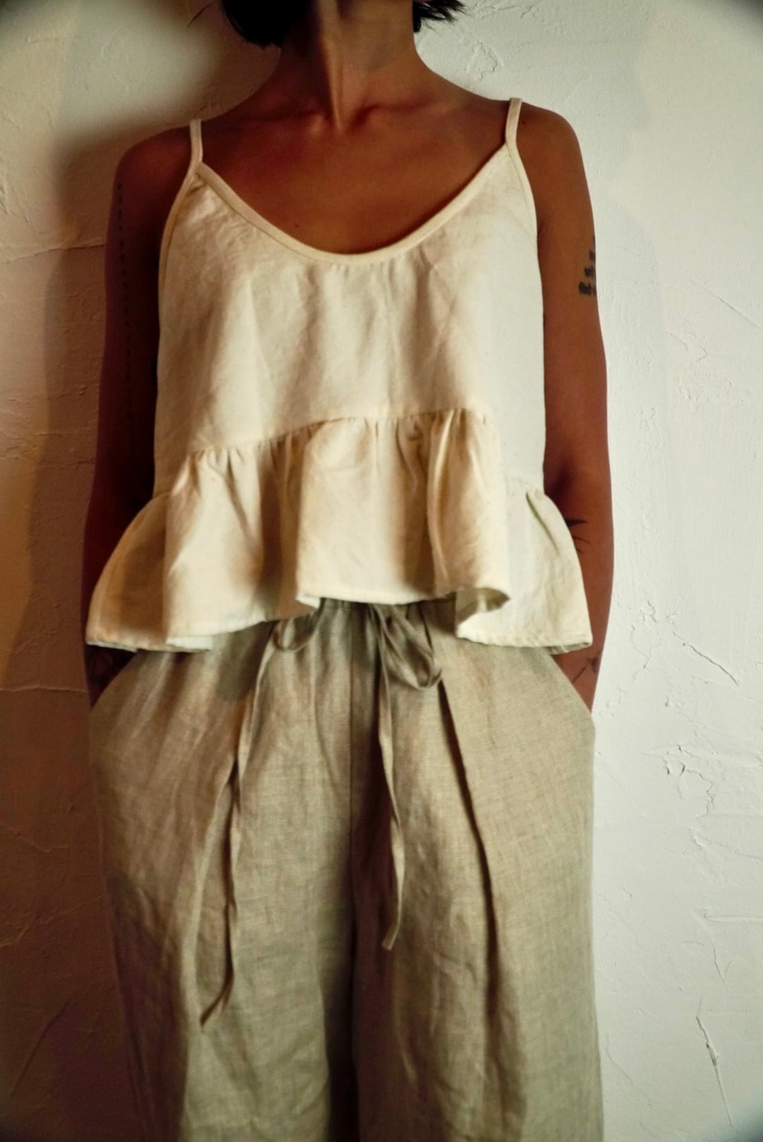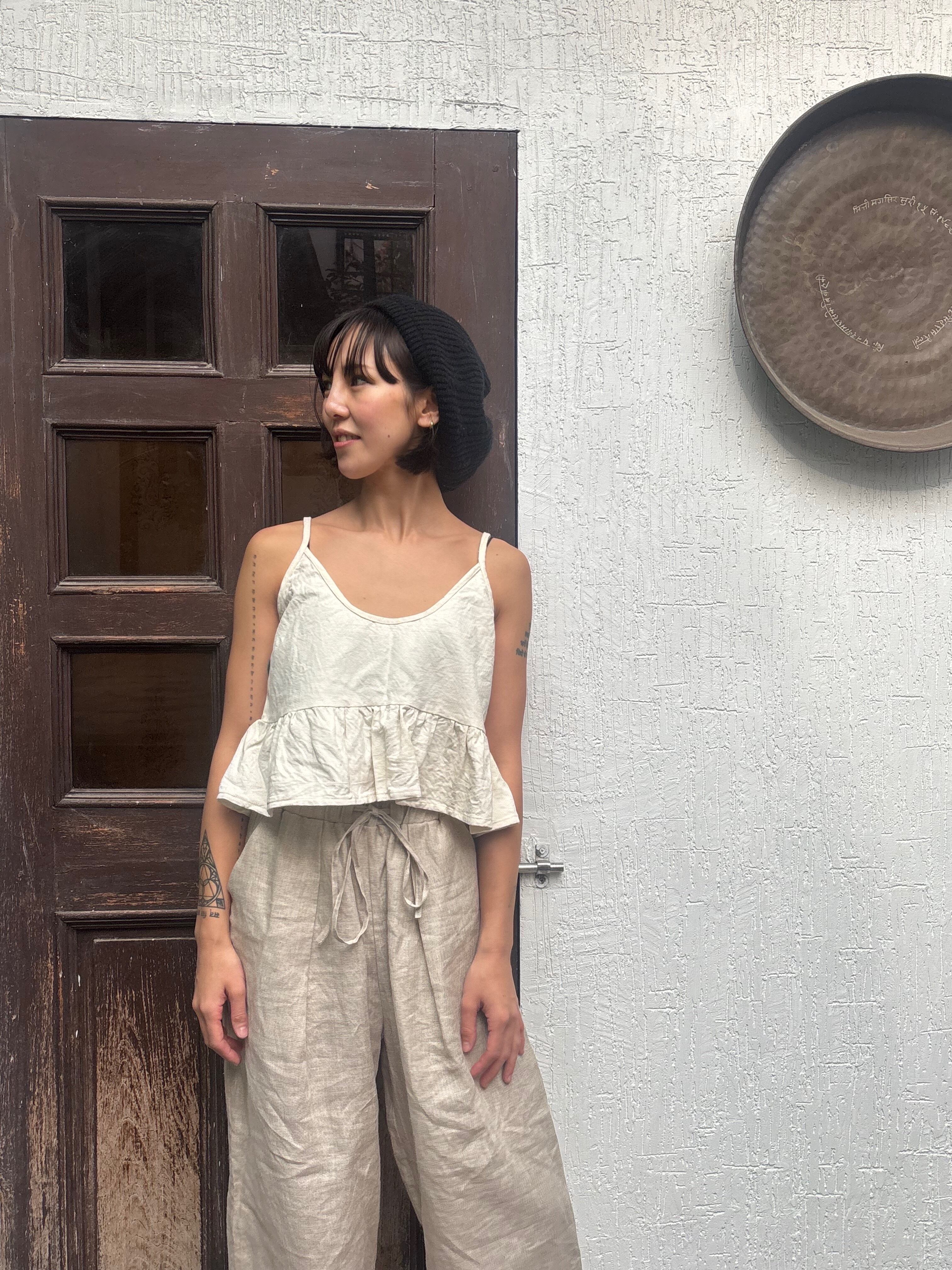 「ハンドルームコットン」で仕立てた、生成りのキャミソールトップスです。