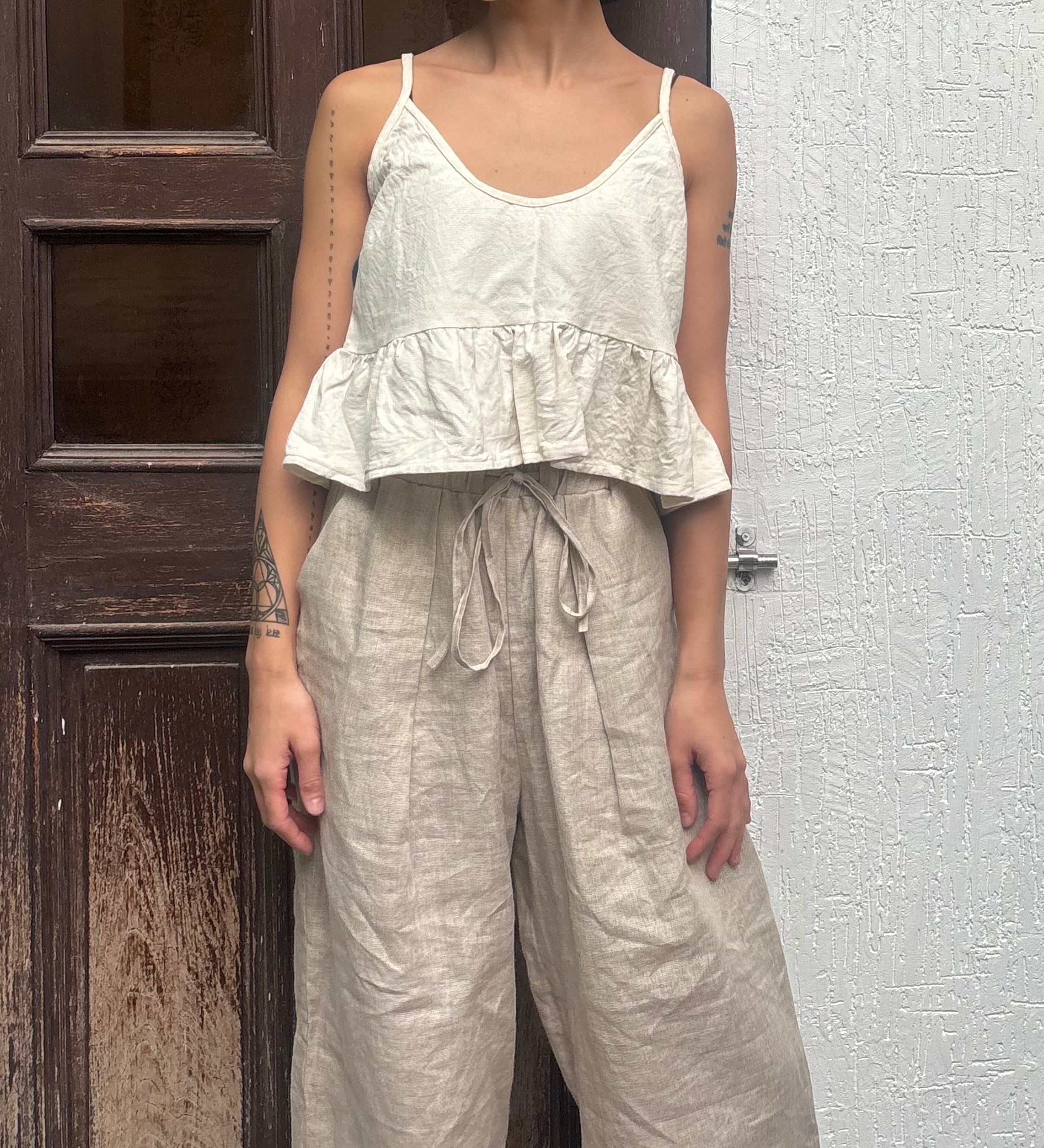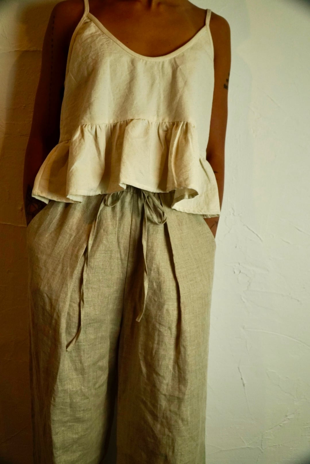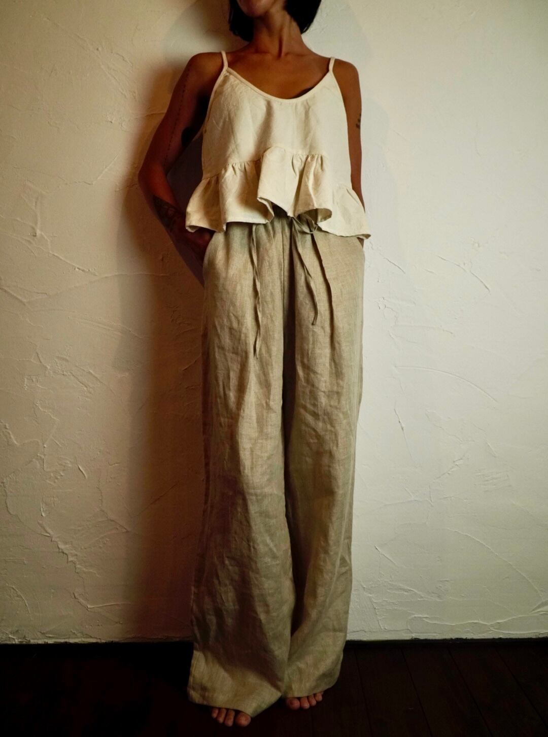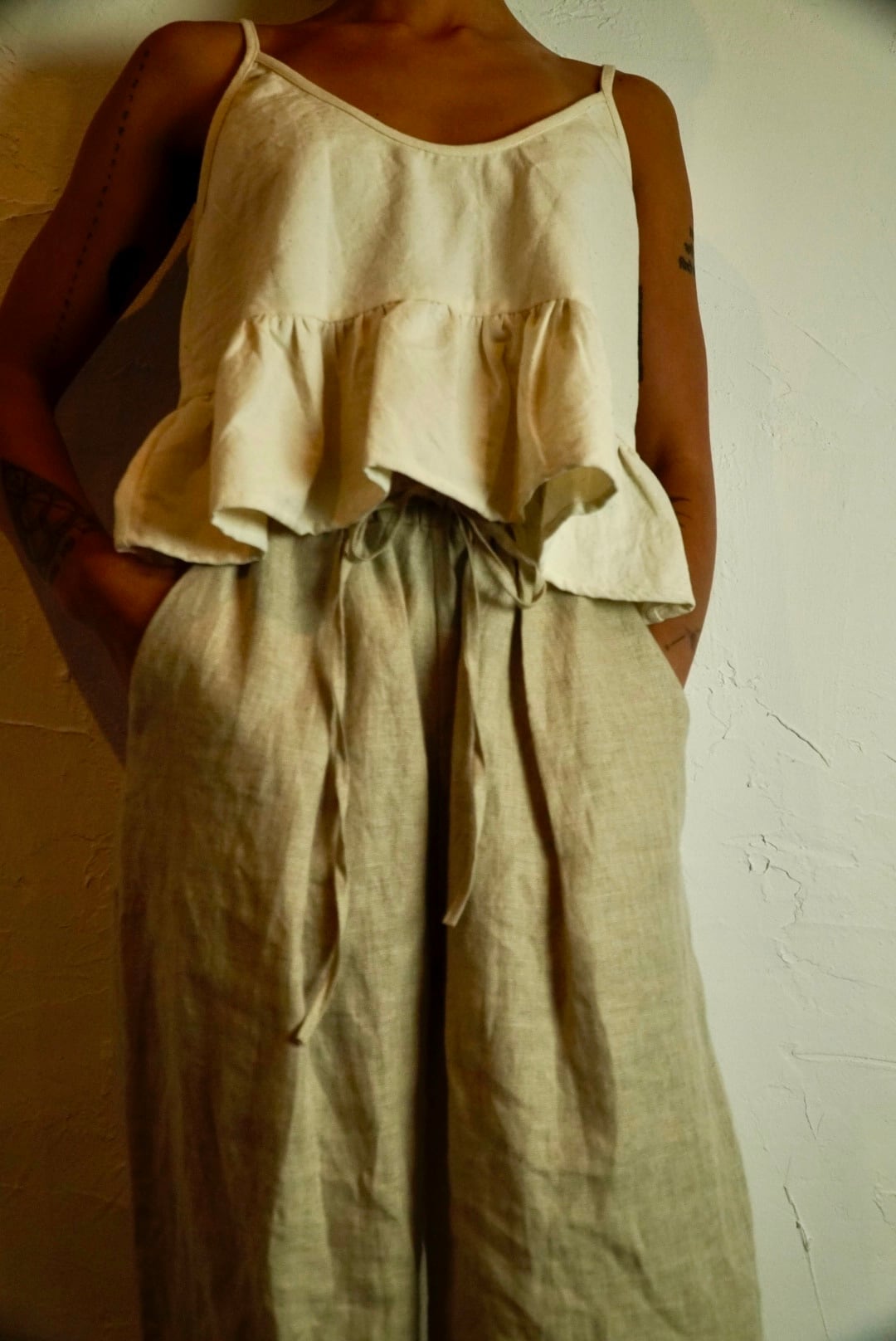「ハンドルームコットン」で仕立てた、生成りのキャミソールトップスです。