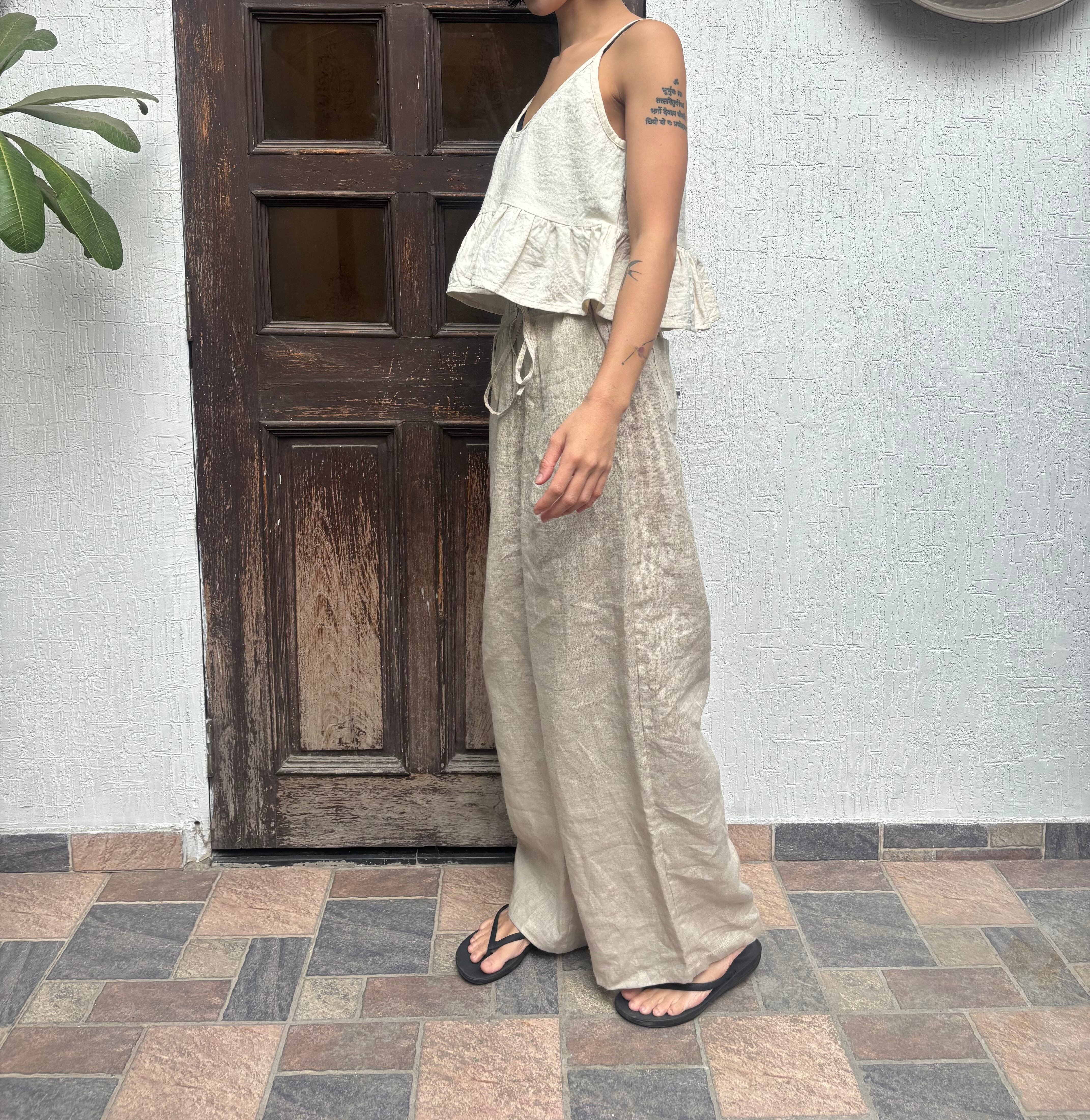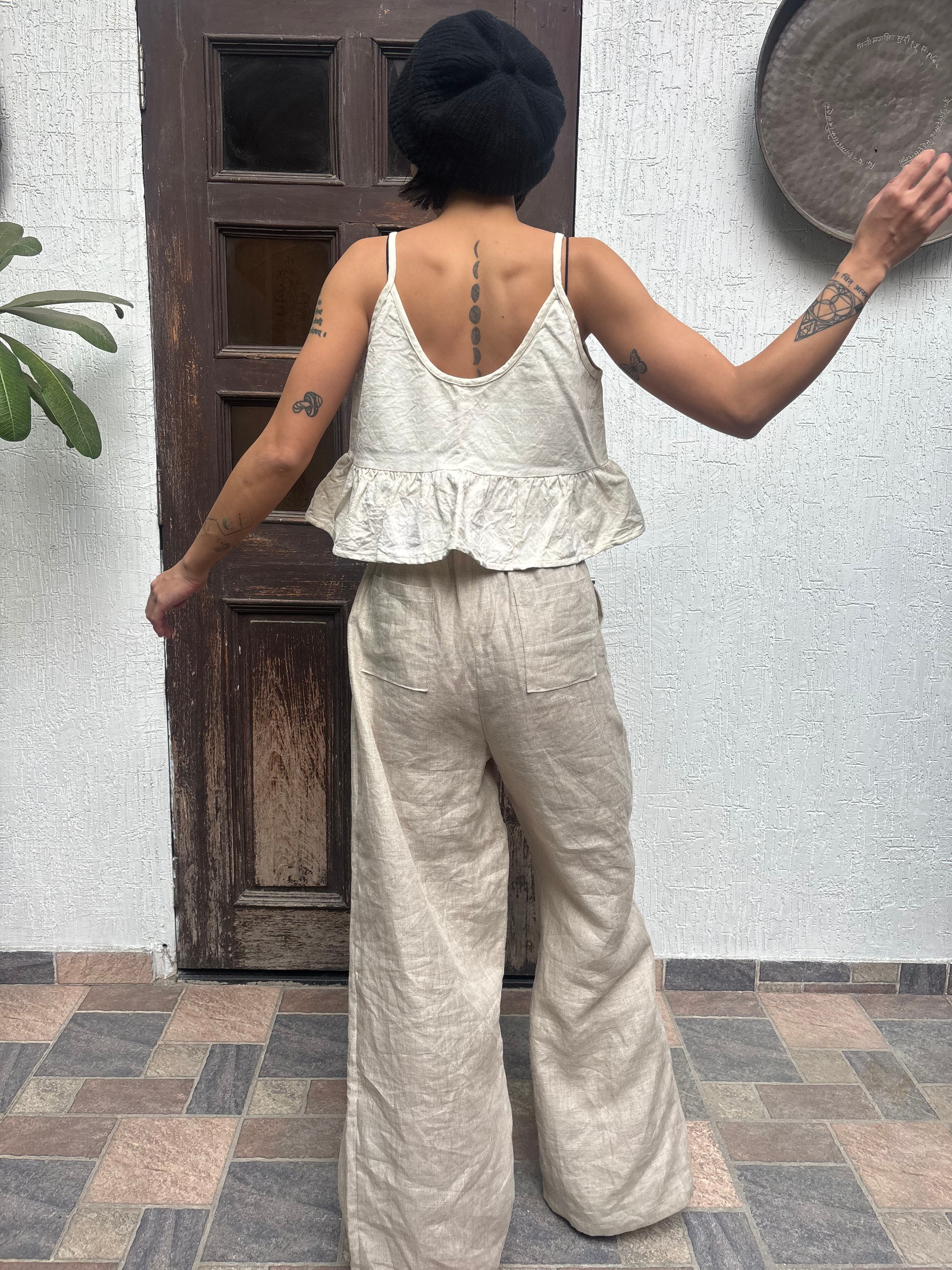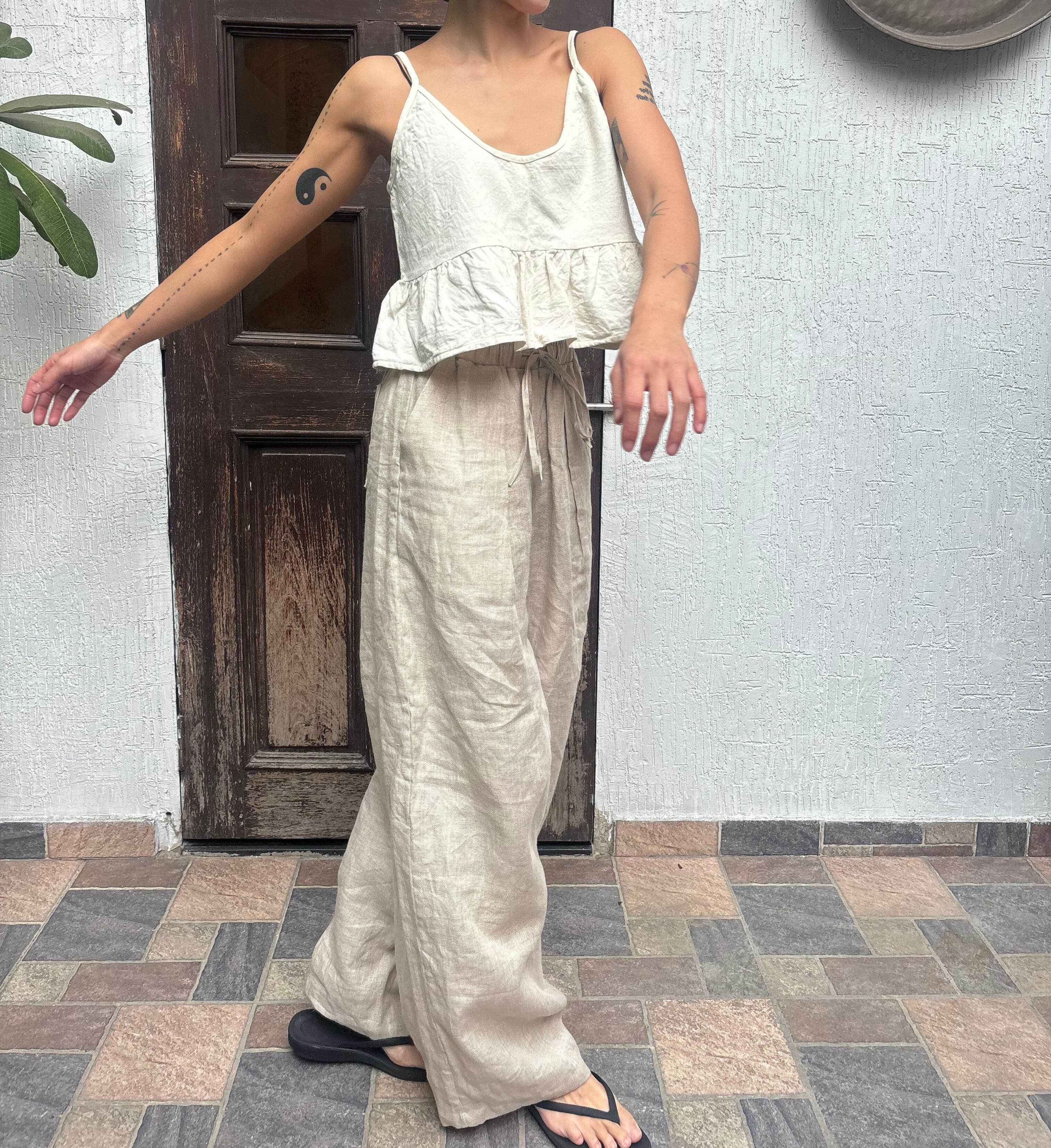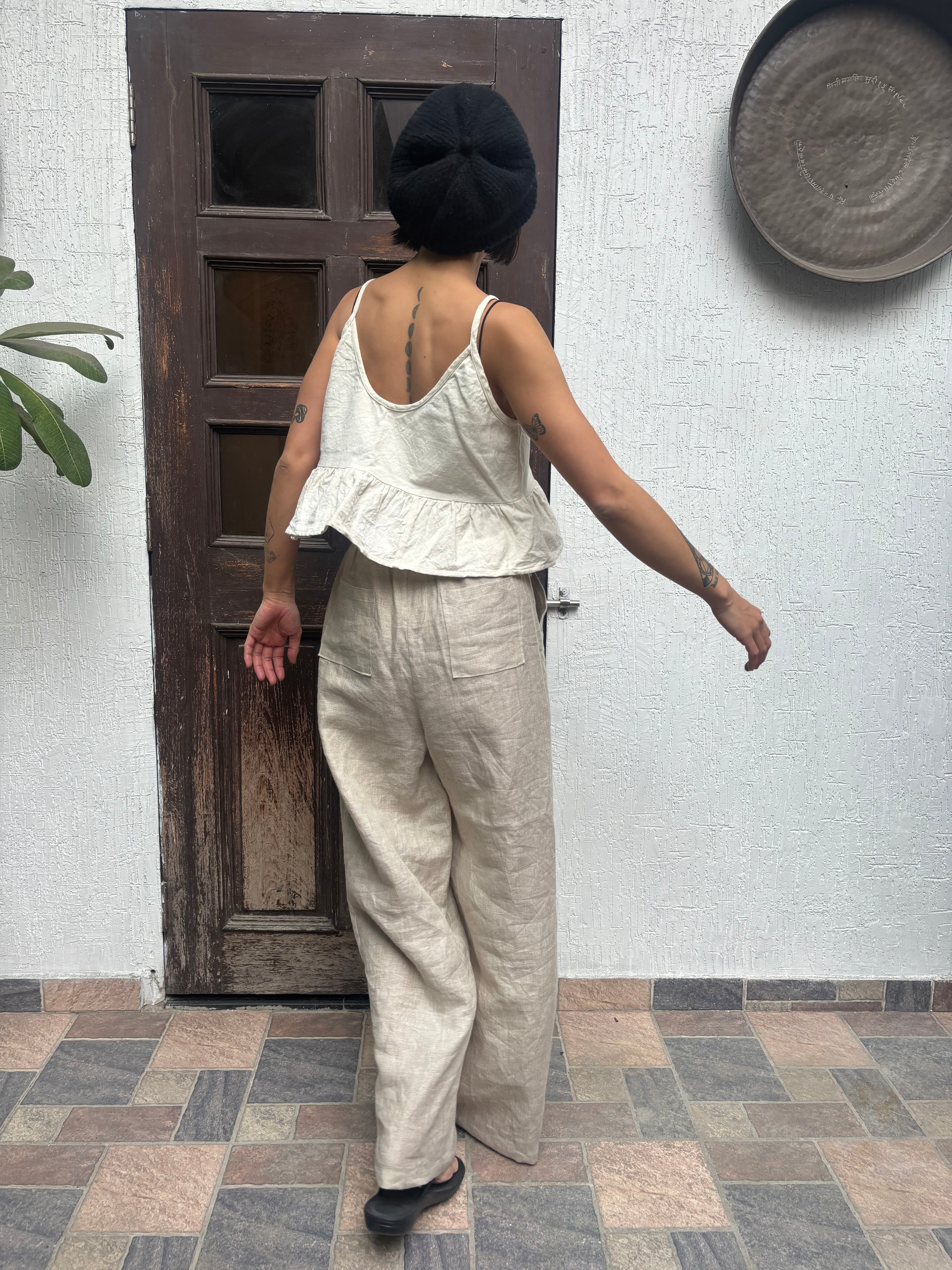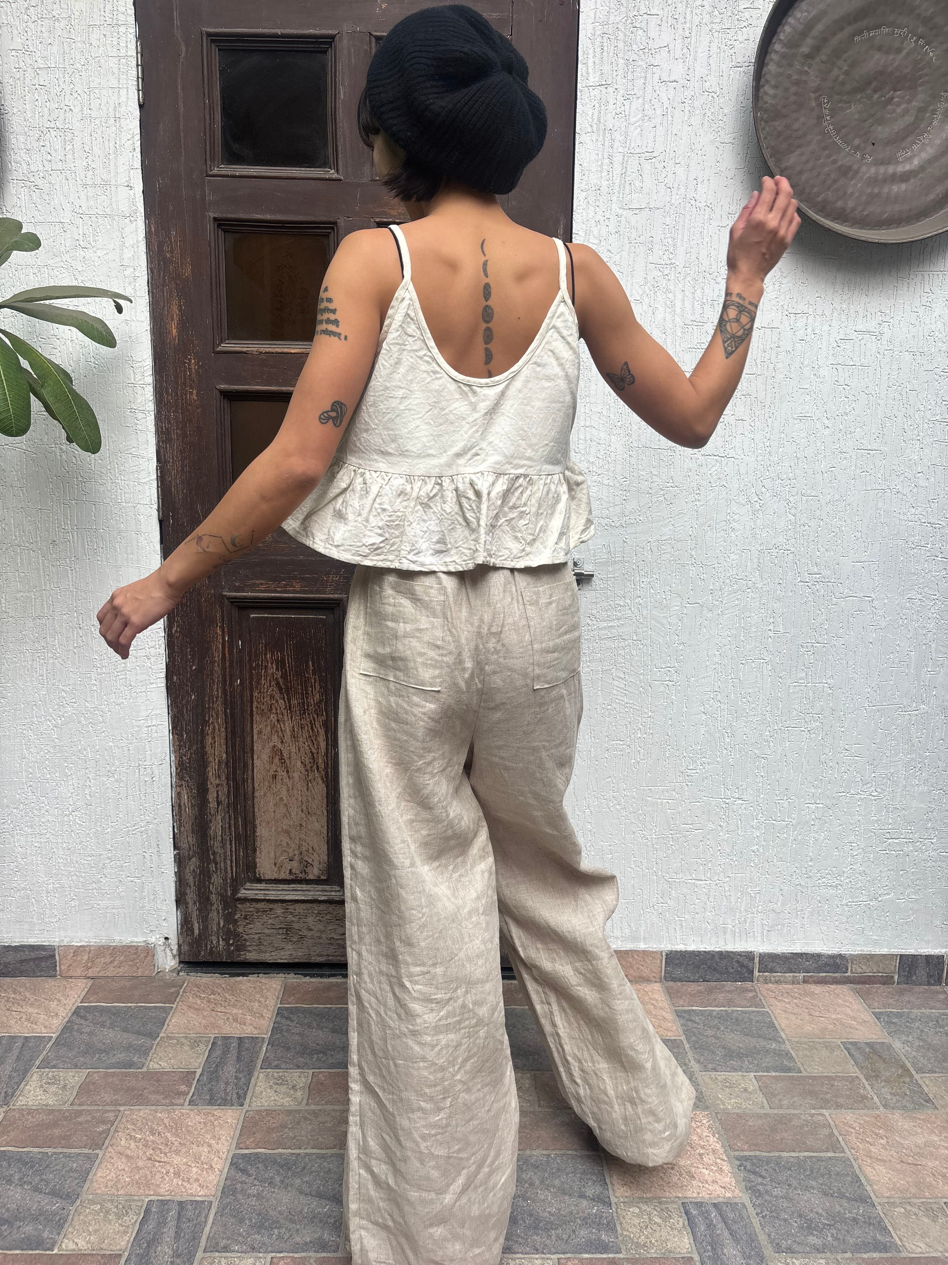 「ハンドルームコットン」で仕立てた、生成りのキャミソールトップスです。