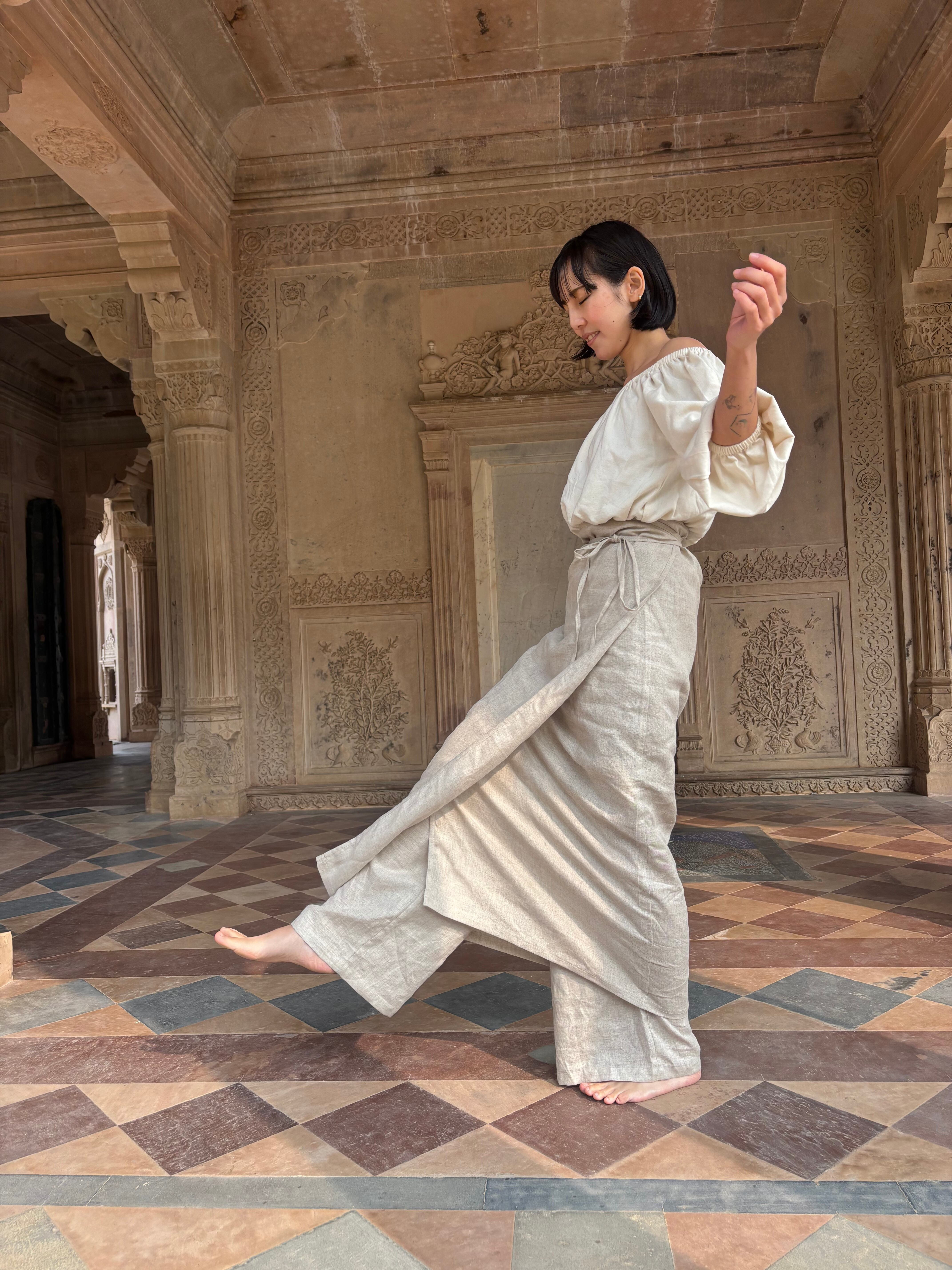 同じ生地のパンツと合わせると、軽やかなセットアップ感も楽しめます。