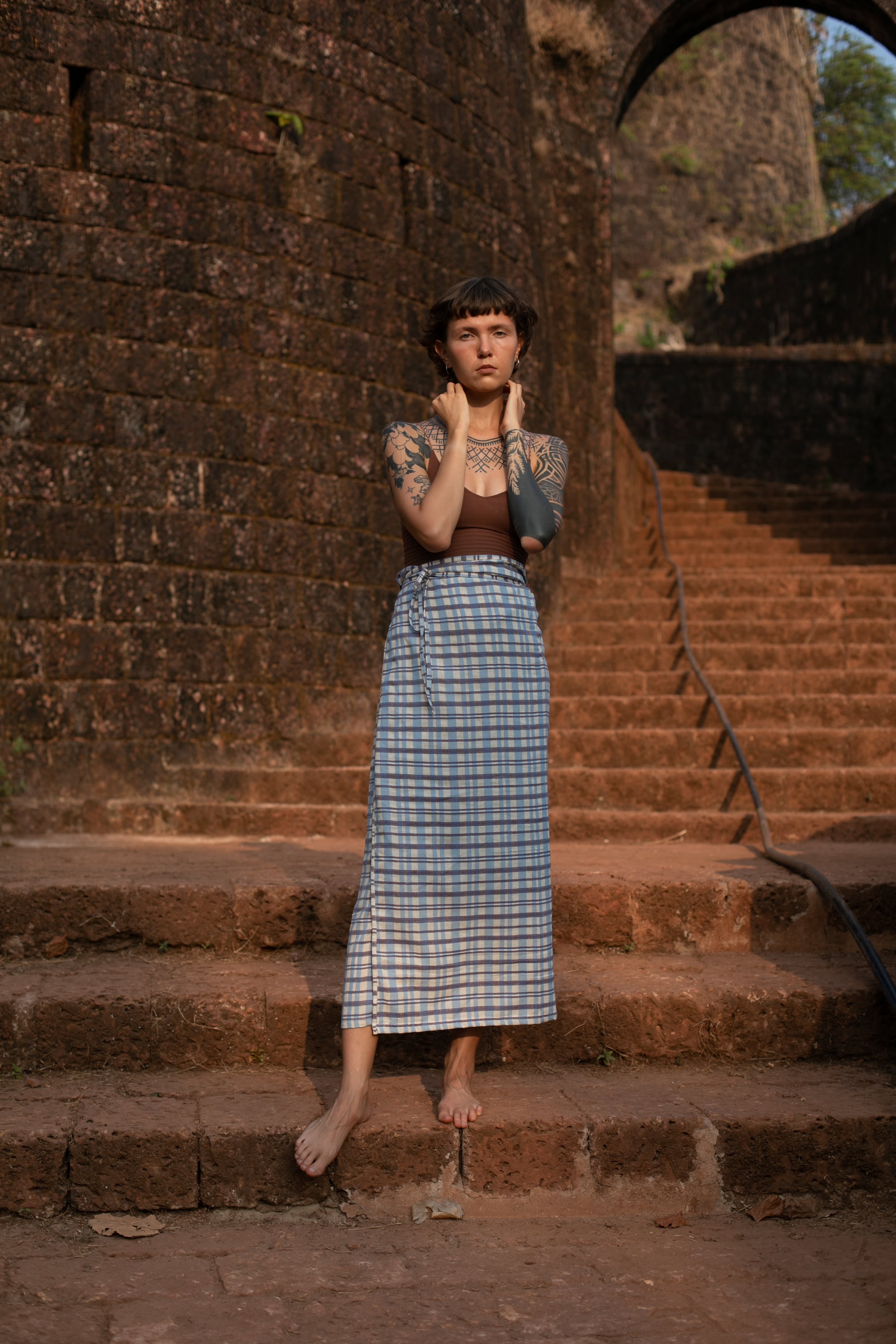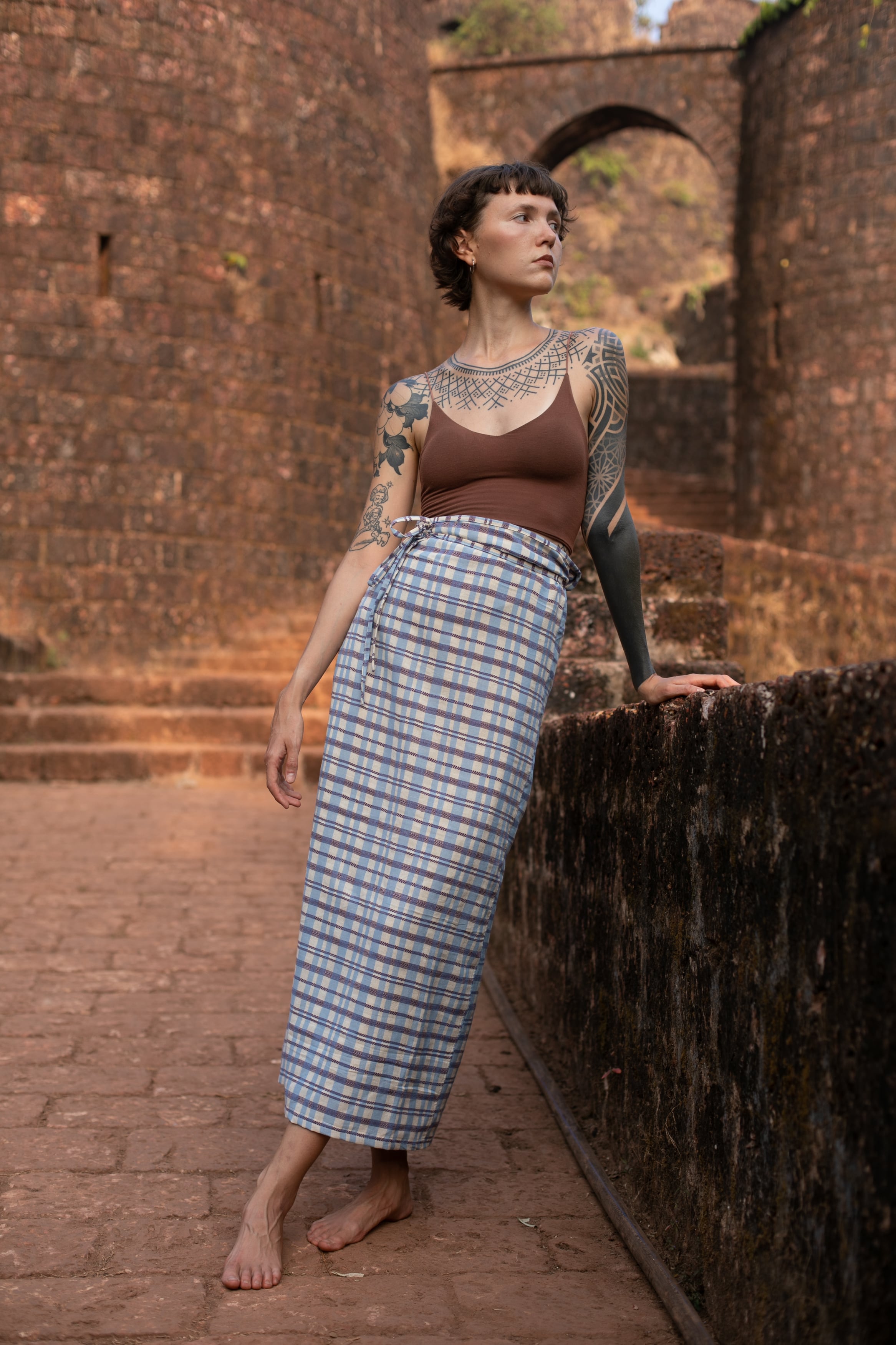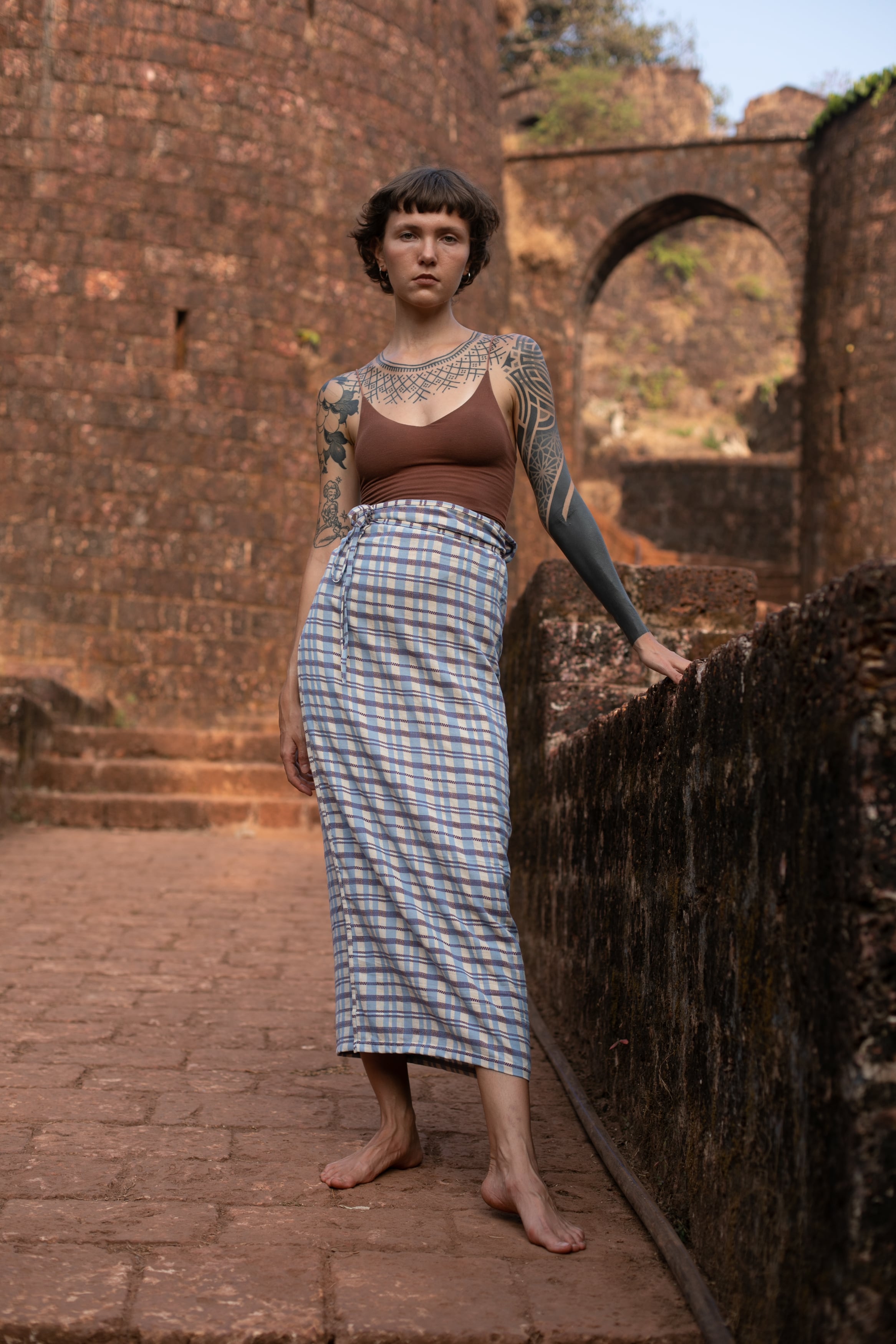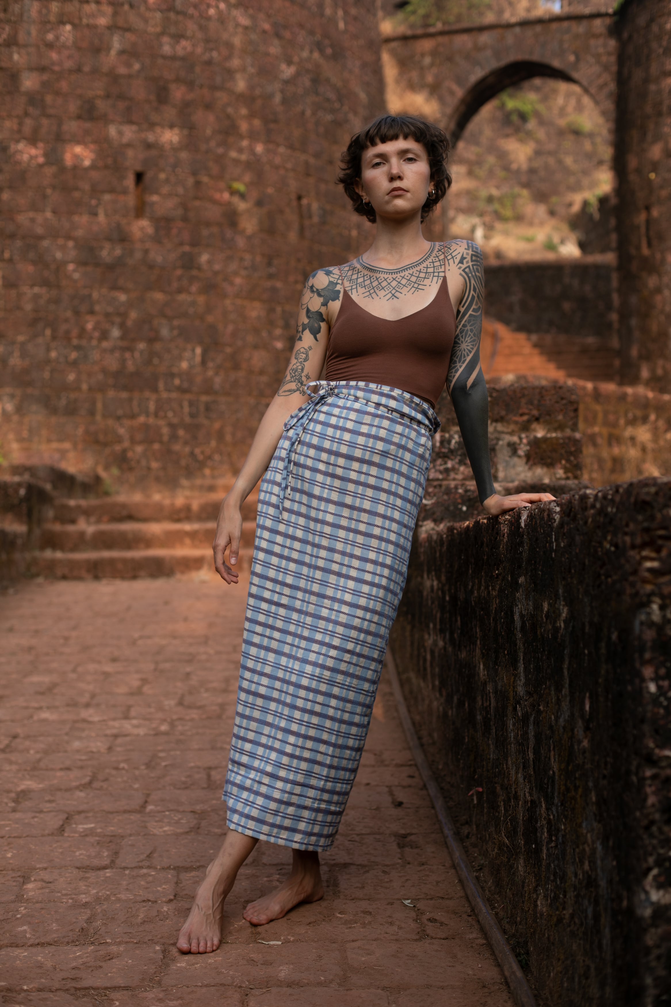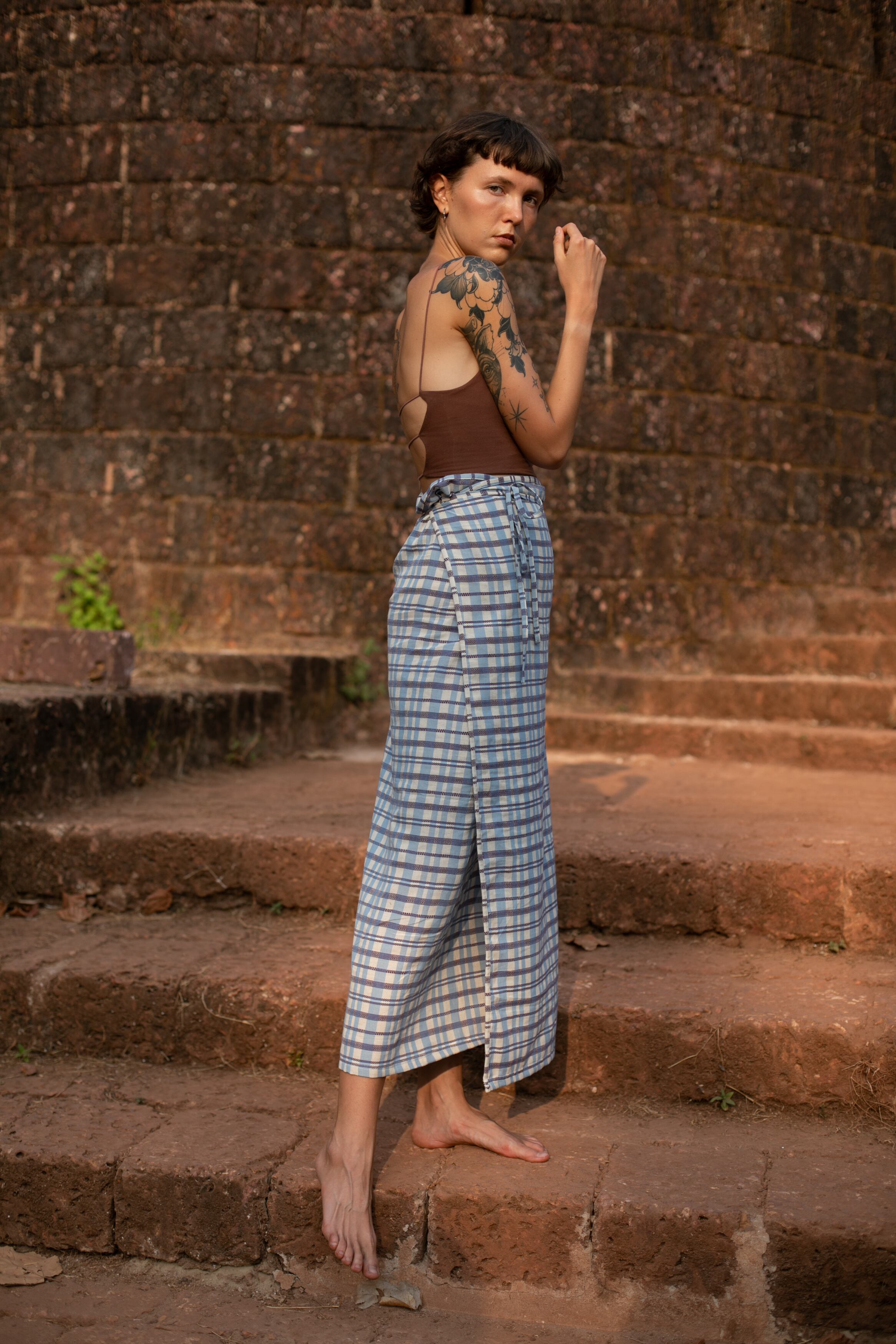 インド・カッチ地方で織られた特有のチェック生地を使用した一着です。
