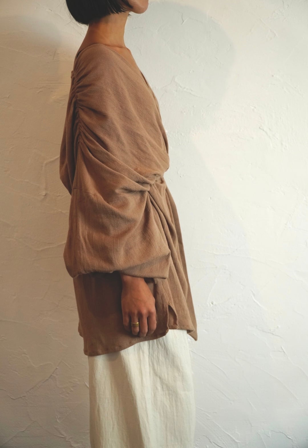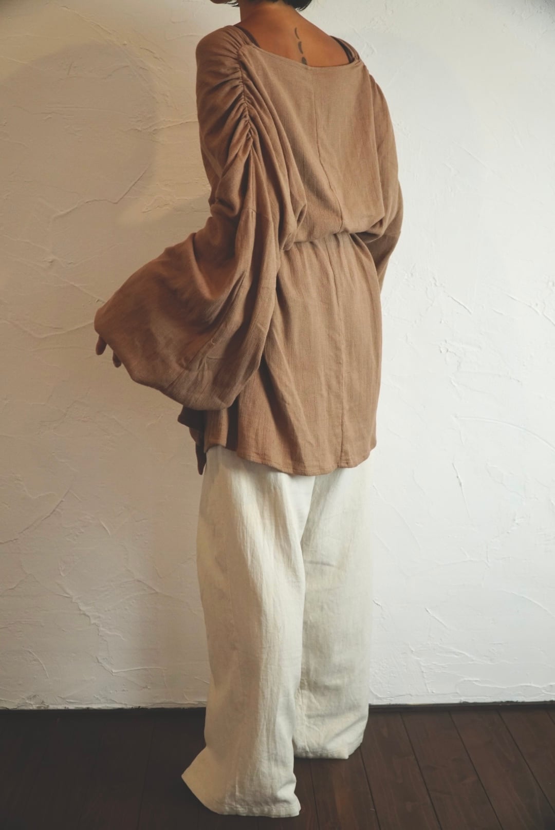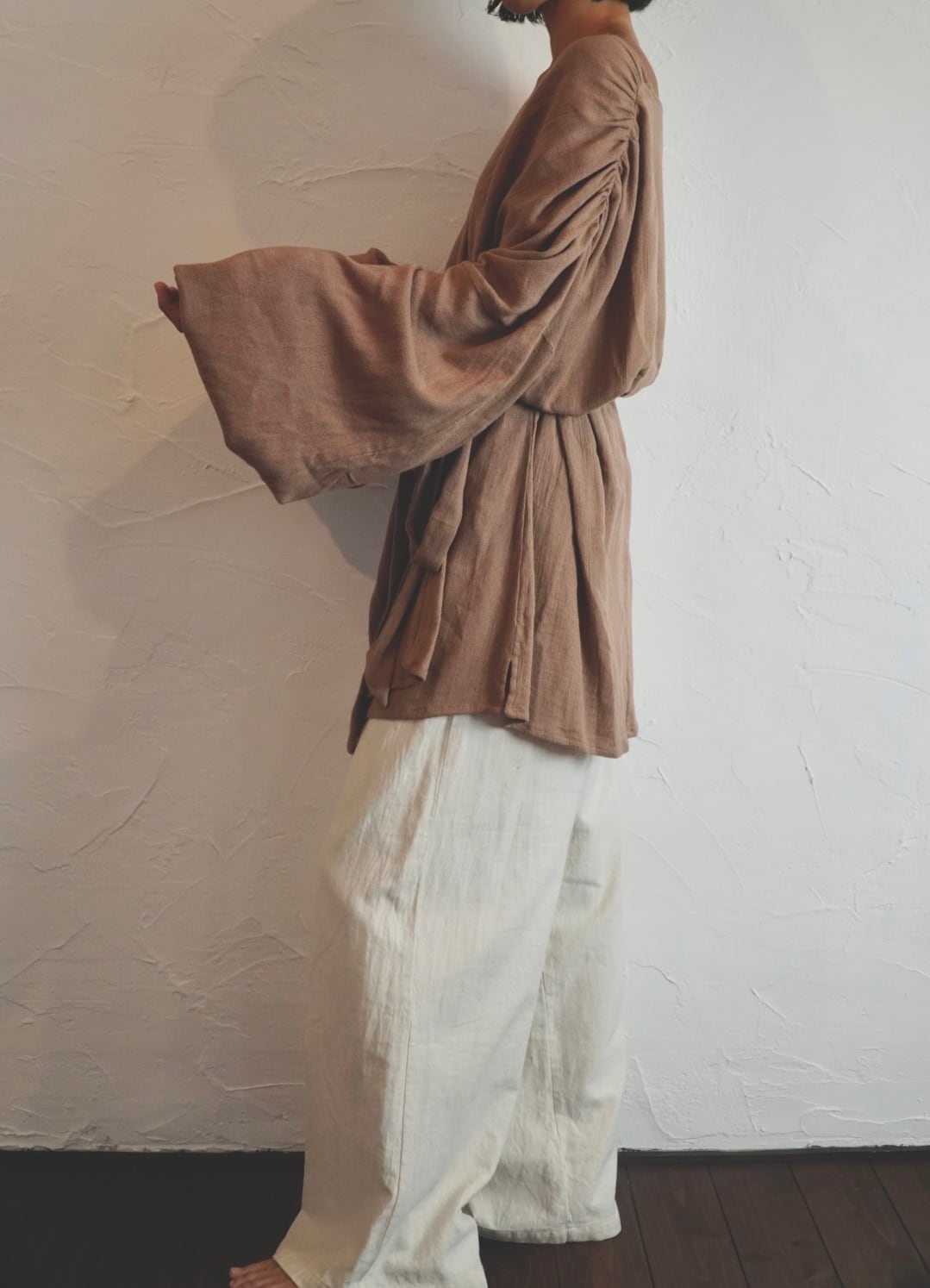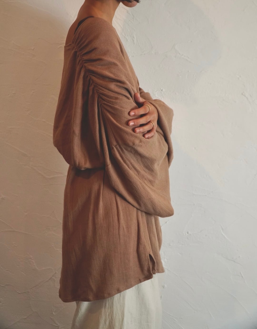 インドのジュート(黄麻)生地を使用し、ボリュームのある袖をあしらった