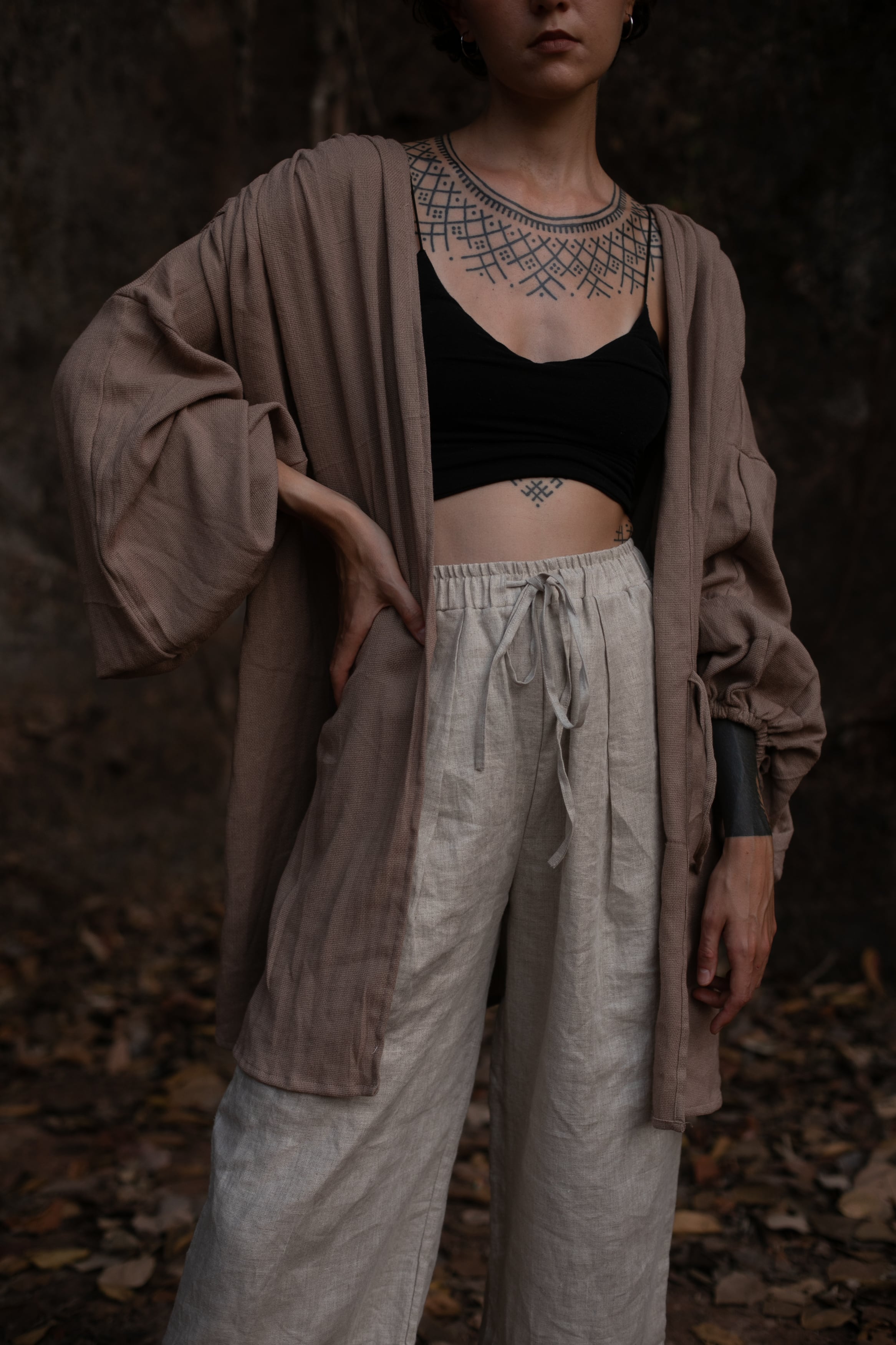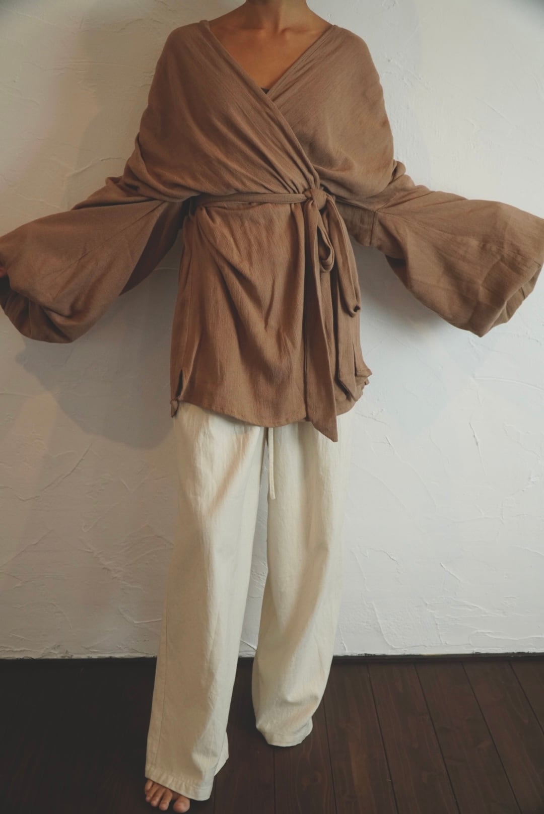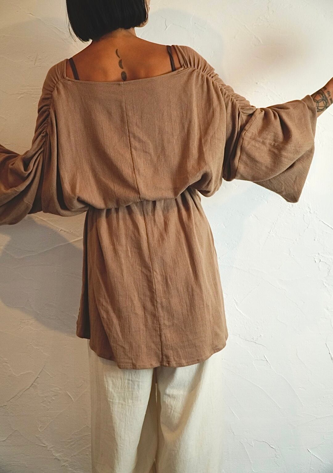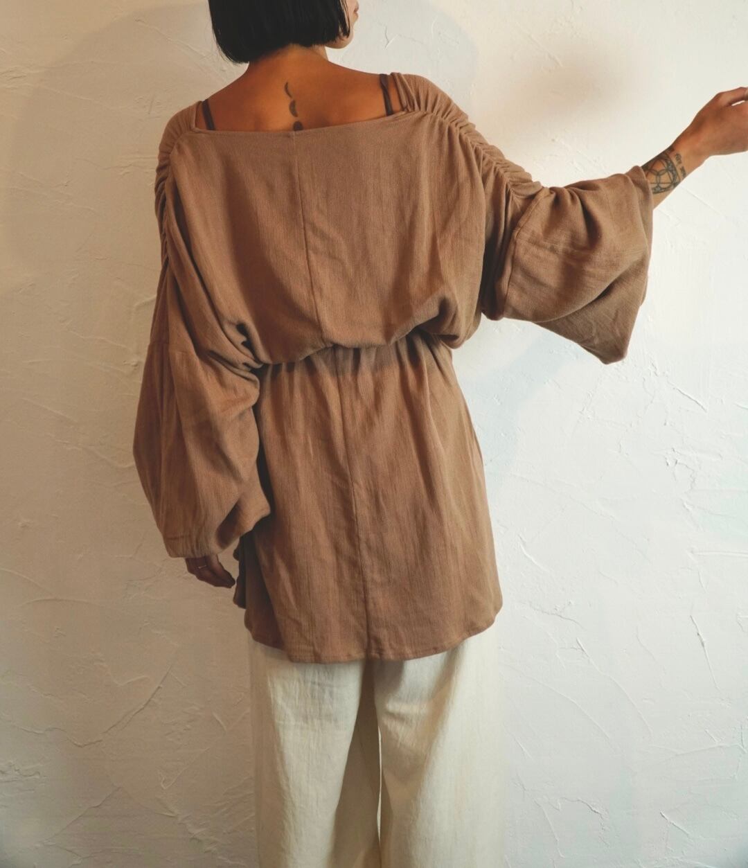 インドのジュート(黄麻)生地を使用し、ボリュームのある袖をあしらった
