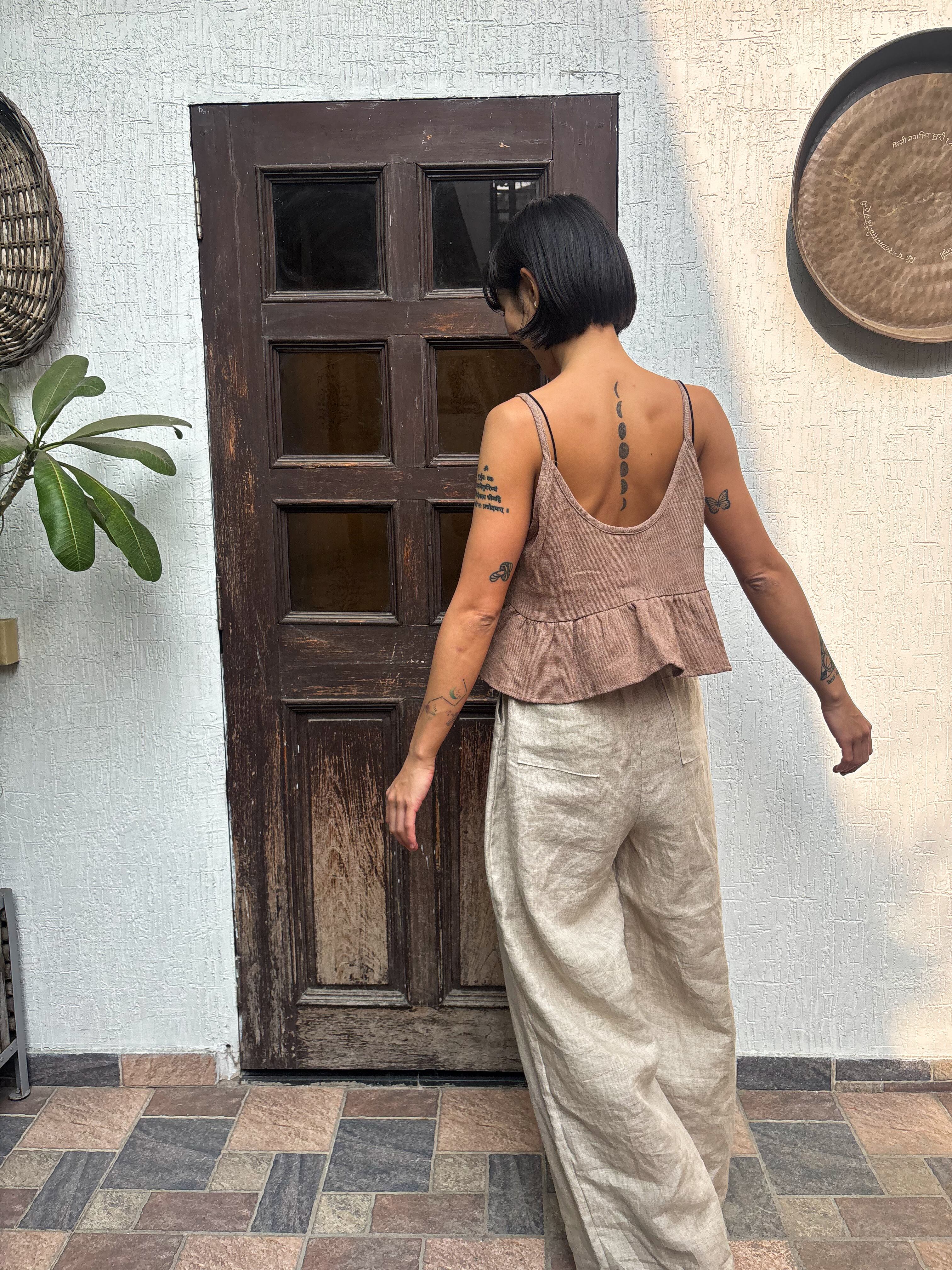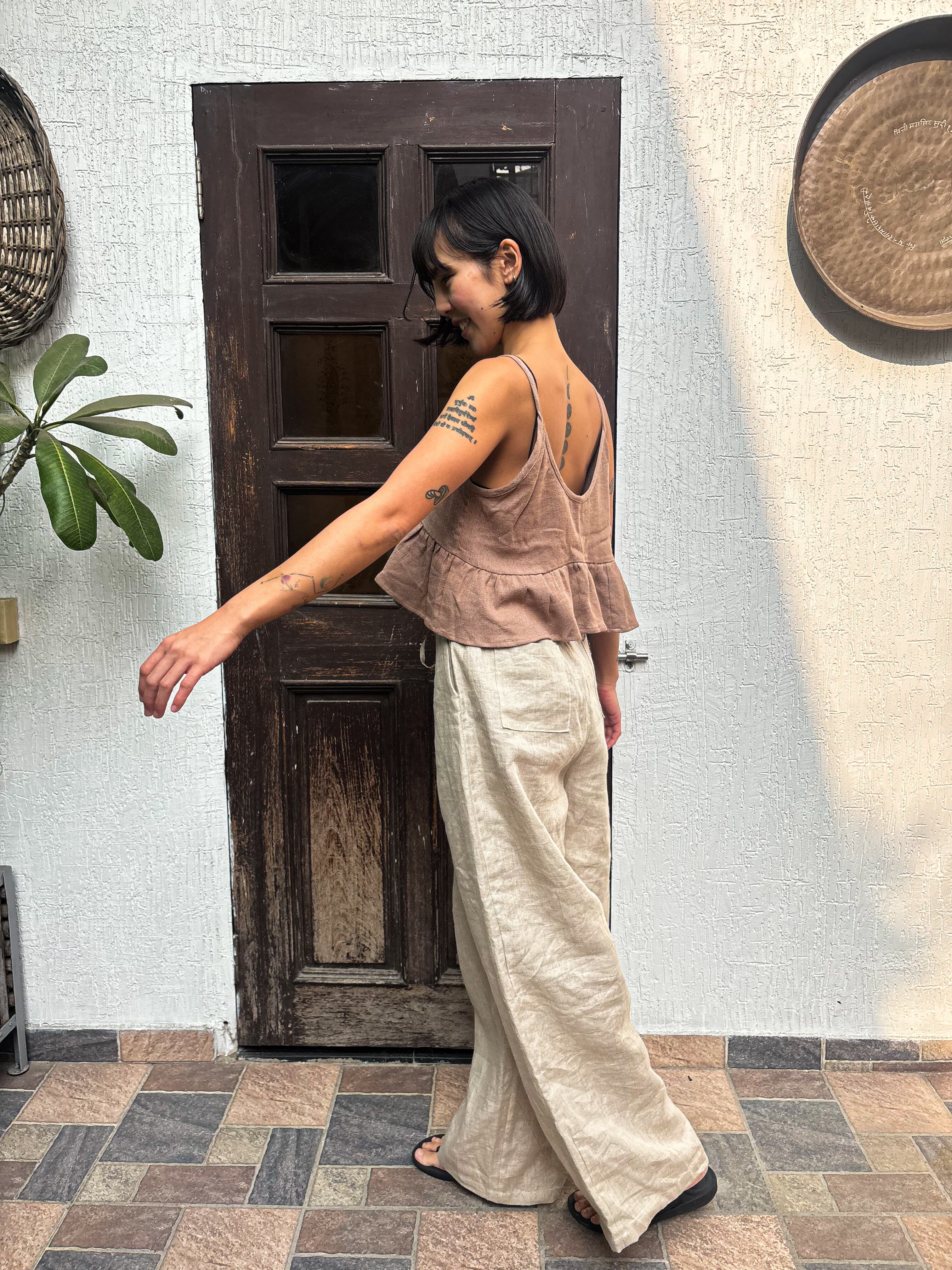 インドのジュート(黄麻)生地を使用し、軽やかなエアリートップに仕立てました。